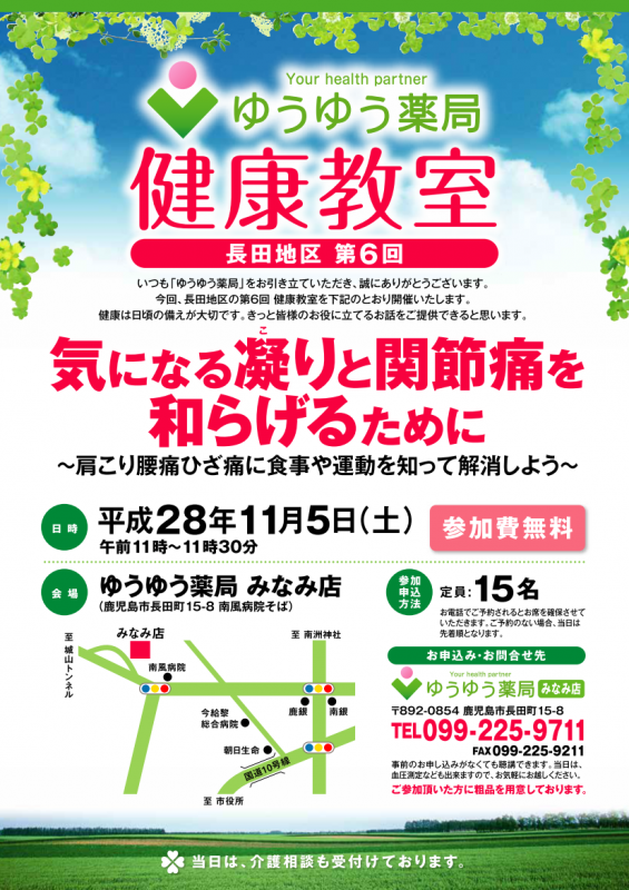 長田地区 第6回 ゆうゆう薬局健康教室を開催しました。 ご参加いただいた皆様、ありがとうございました。