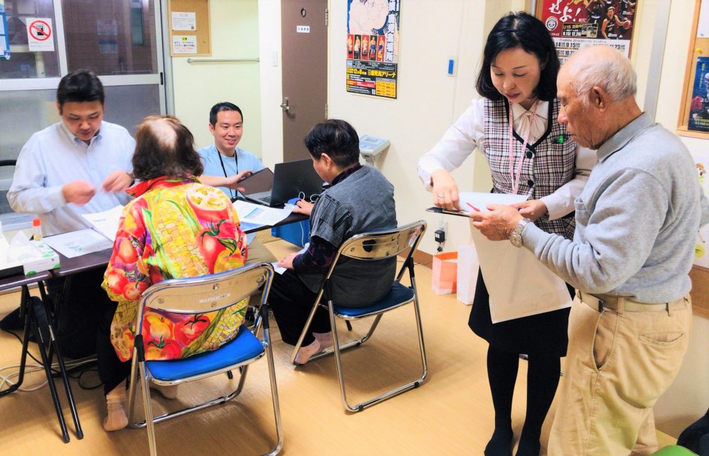 薬剤師の先生が、骨強度、血圧、血管年齢の無料測定を行い、