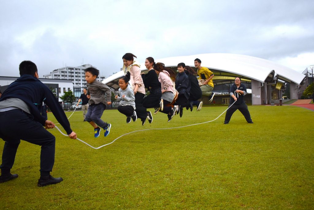 晴れ間が少し見えたので、大長縄大会を実施しました(笑)
